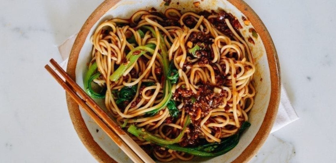 Dan dan noodles is a classic Chinese dish from Sichuan, which is noted for its spicy food. The heat here comes not from fresh chiles,