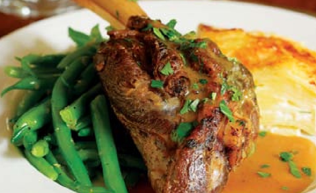 After the long braise, the garlic cloves are tender enough to push through a sieve, creating a flavorful purée that thickens the pan sauce. Don’t
