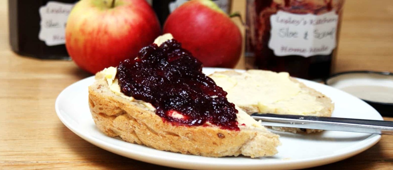 Sloes added to an apple jelly give it an exquisite rosy hue and a lovely tart taste. This is another versatile preserve, which works with