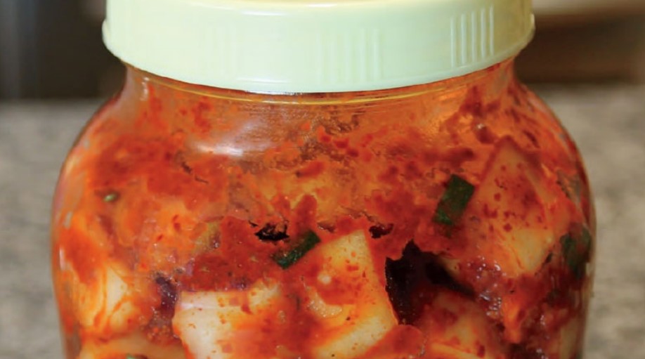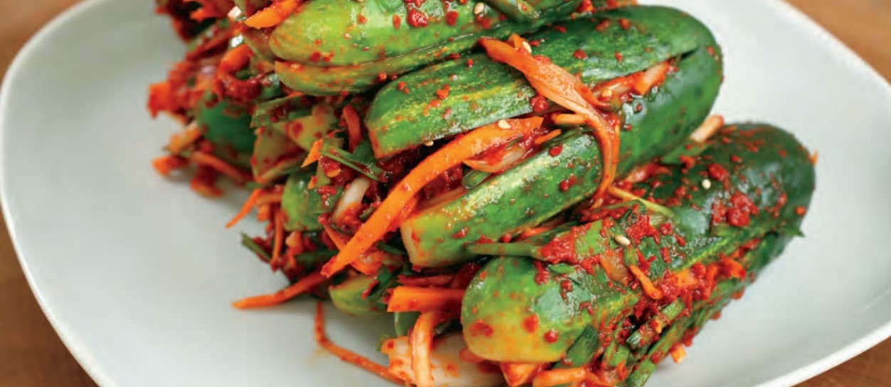 This kimchi is great in the summertime, when cucumbers are in season, but you can make it at any time of the year. It’s usually