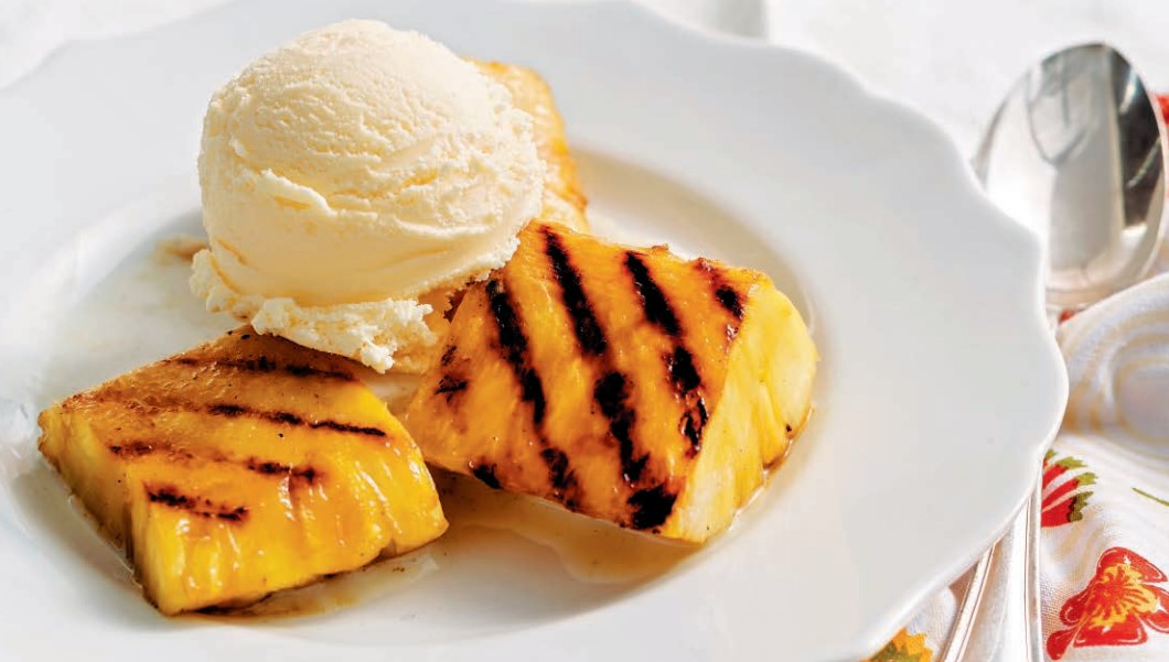This is a simple recipe for a delicious, juicy, rum and brown sugar–rubbed pineapple kebab. Serve these hot off the grill with a scoop of