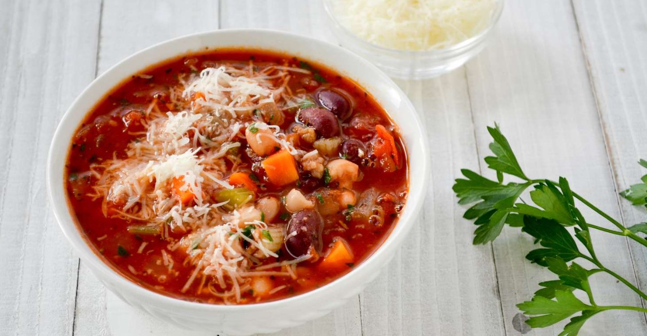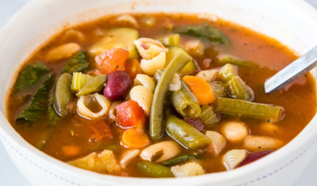 This classic Italian soup is jam-packed with beans, zucchini, onion, tomatoes, carrots, pasta, and spices; but O.G.’s secret formula doesn’t include chicken broth. Canned vegetable