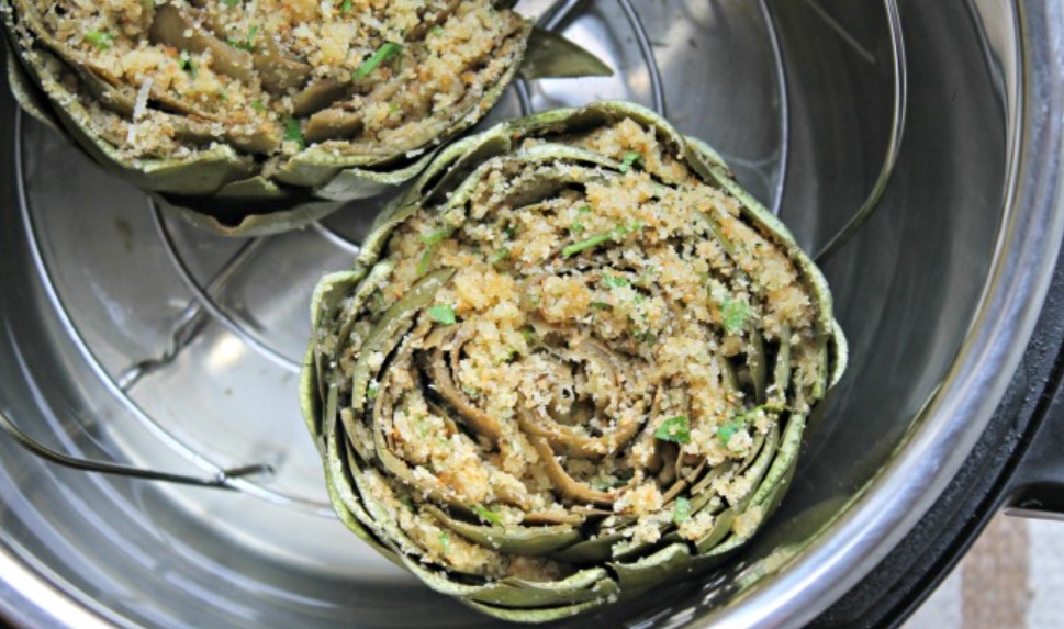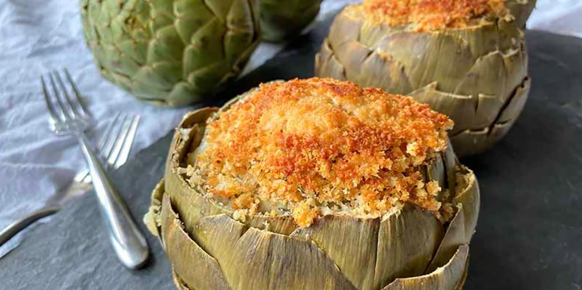 My grandmother’s stuffed artichoke recipe gets an infusion of spicy Italian sausage, making it a terrific starter, side dish, or lunch entree. The artichokes are