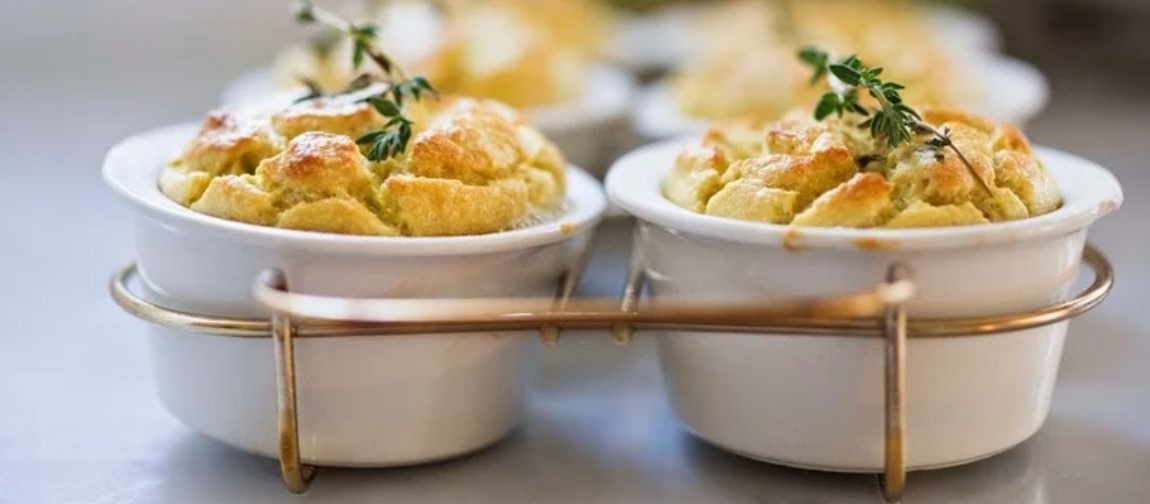 These custards make a delicious side dish or even a brunch entree. A blend of smooth fresh goat cheese, eggs, garlic, and artichokes bakes in