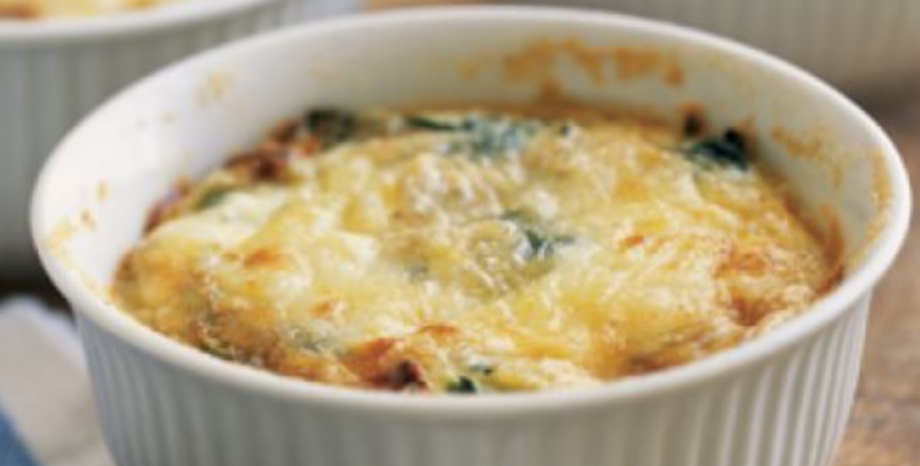 Here, ramekins are lined with crispy bacon and filled with a creamy Gruyere and egg mixture studded with bright green spinach. These make a terrific