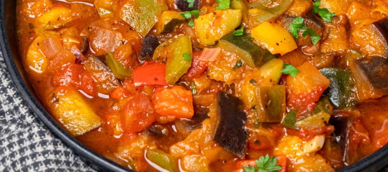 From the French region of Provence, this eggplant dish is flavored with a traditional bouquet of herbs and garlic and, for a change of pace,