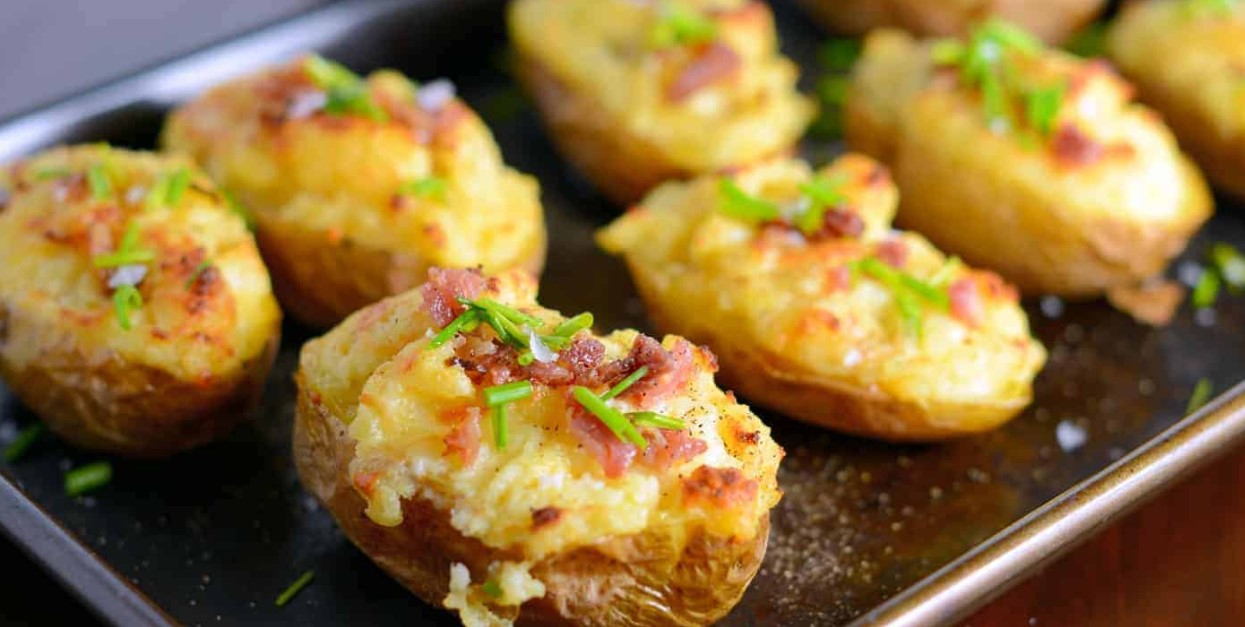 These potatoes are a little fancy but well worth the extra work. They’re steamed and then baked with garlic, herbs, and goat cheese, which give
