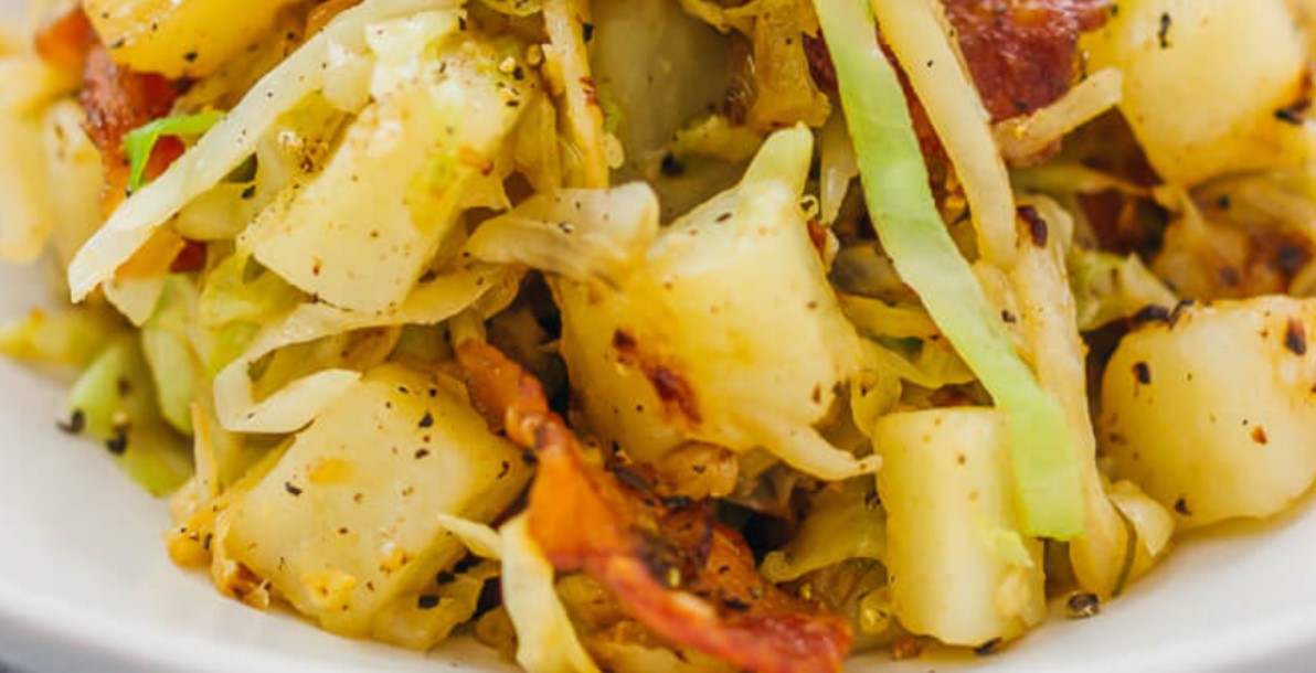 In this version of colcannon-a classic dish from Ireland-bacon and Yukon Gold potatoes are added to the cabbage. (Colcannon is made with kale, too.) The