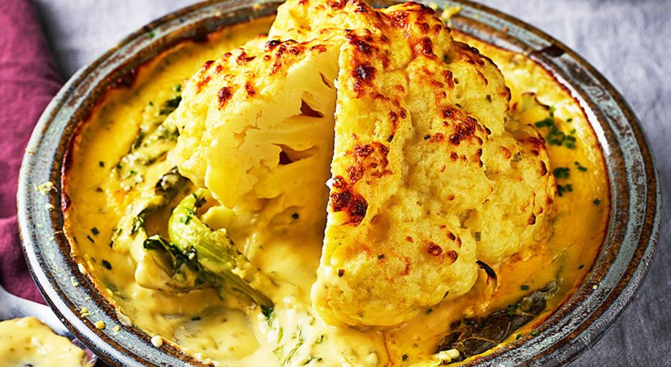 Whole cauliflower makes a spectacular side dish. Whether you cover it with toasted bread crumbs or an oozy, cheesy sauce, it’s a showstopper on the
