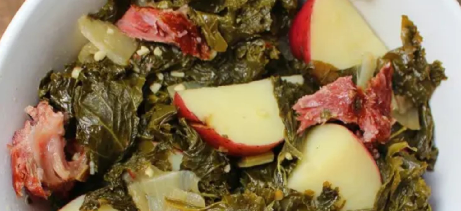 This dish is almost a one-pot meal. Serve it with corn bread for a simple supper. The potatoes and collards really soak up the flavor
