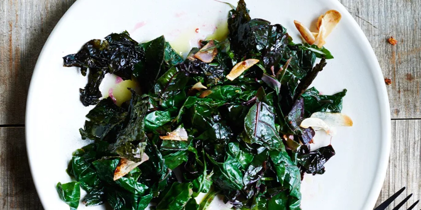 My grandmother made a version of this garlic oil-infused Swiss chard that was so delicious I would eat it hot or cold (it’s good at
