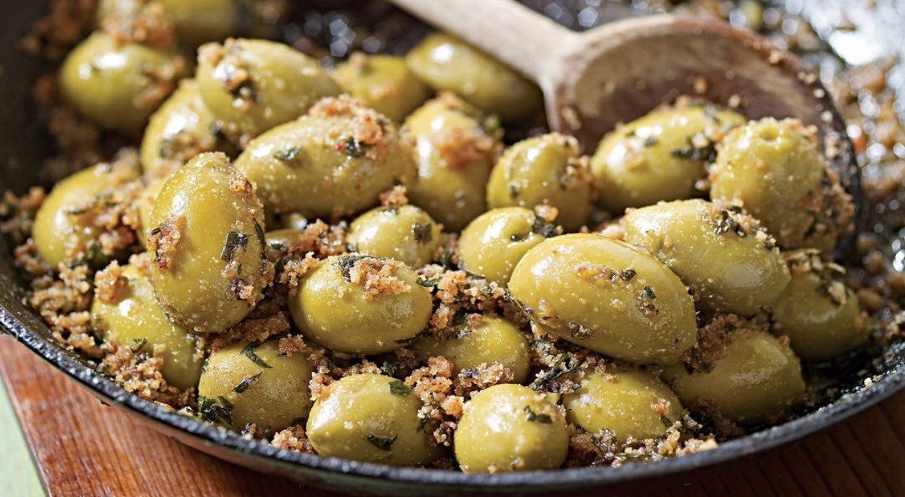 Green olives with spicy bread crumbs is a delicious and flavorful appetizer or snack. Sunday lunch in Rome means big family gatherings at the neighborhood