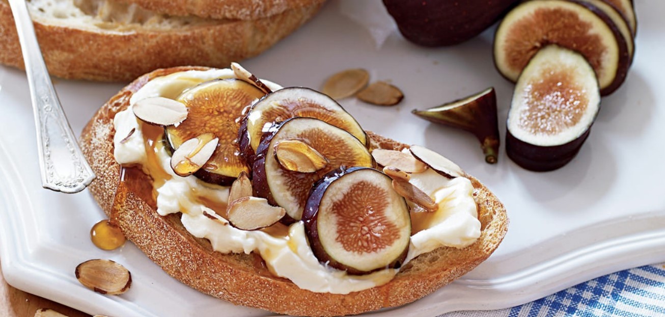 Crostini are delightful for breakfast too. Spread warm toasted bread with a soft creamy cheese like mascarpone or ricotta, add some sliced fresh figs or