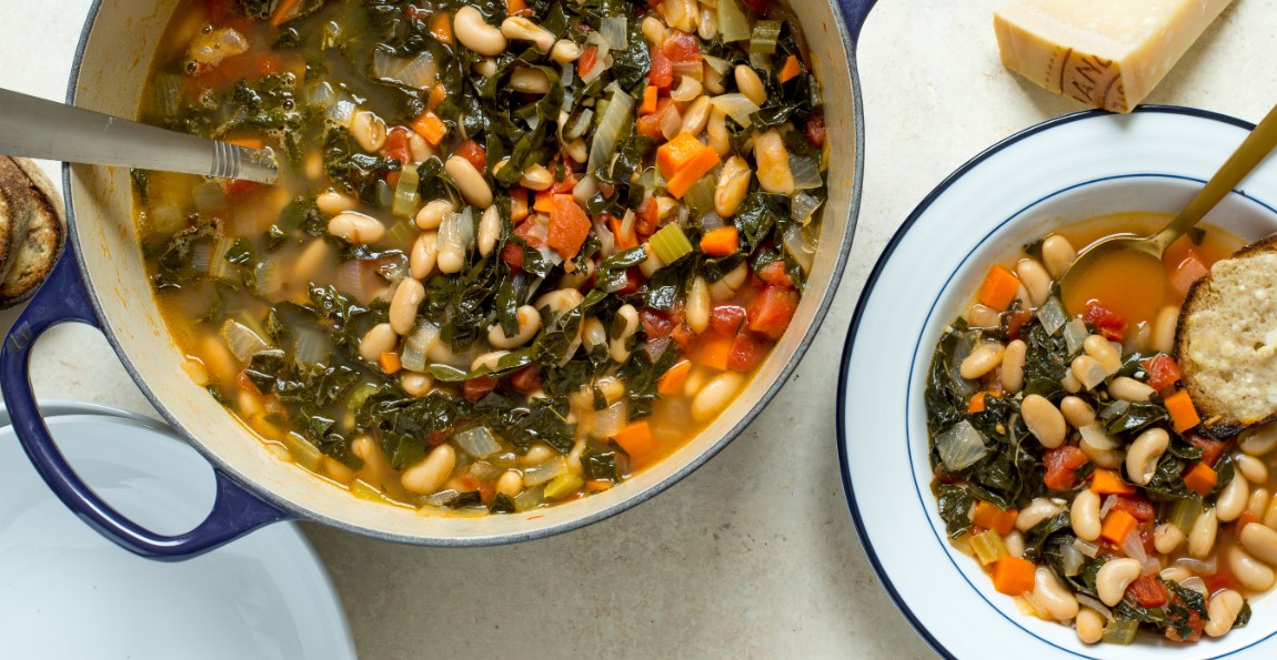 Escarole or broccoli rabe would also be good in this hearty stew. With cooked or canned beans on hand, it’s the kind of easy dish