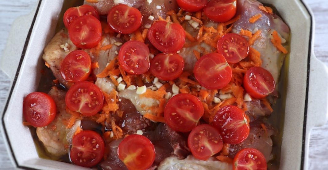 Chicken, Carrot, and Cherry Tomatoes Casserole is a delightful and flavorful dish that combines tender chicken, sweet carrots, and juicy cherry tomatoes in a comforting