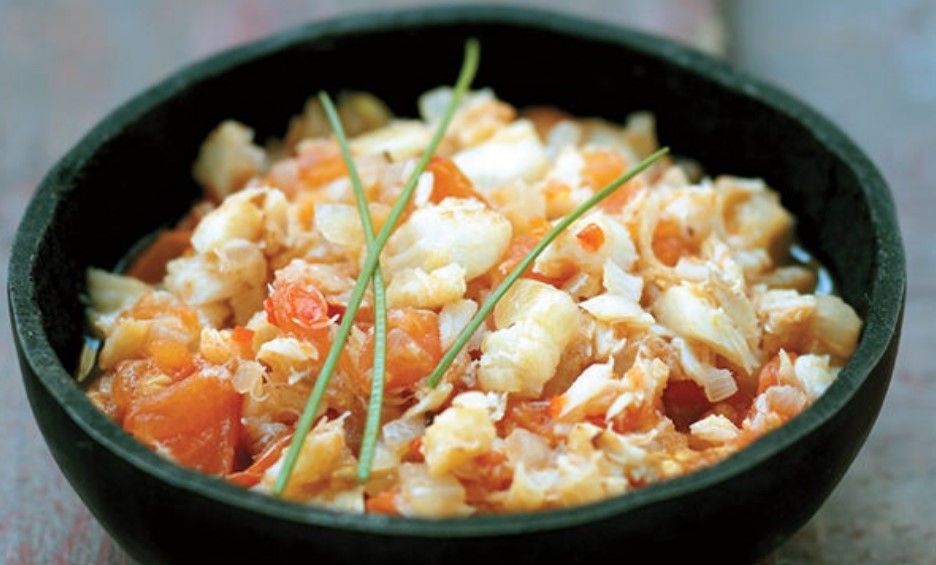 Rougail, a spicy tomato preparation, is a traditional Réunion treatment of salted and dried cod, called morue in French and bacalao or variants in other