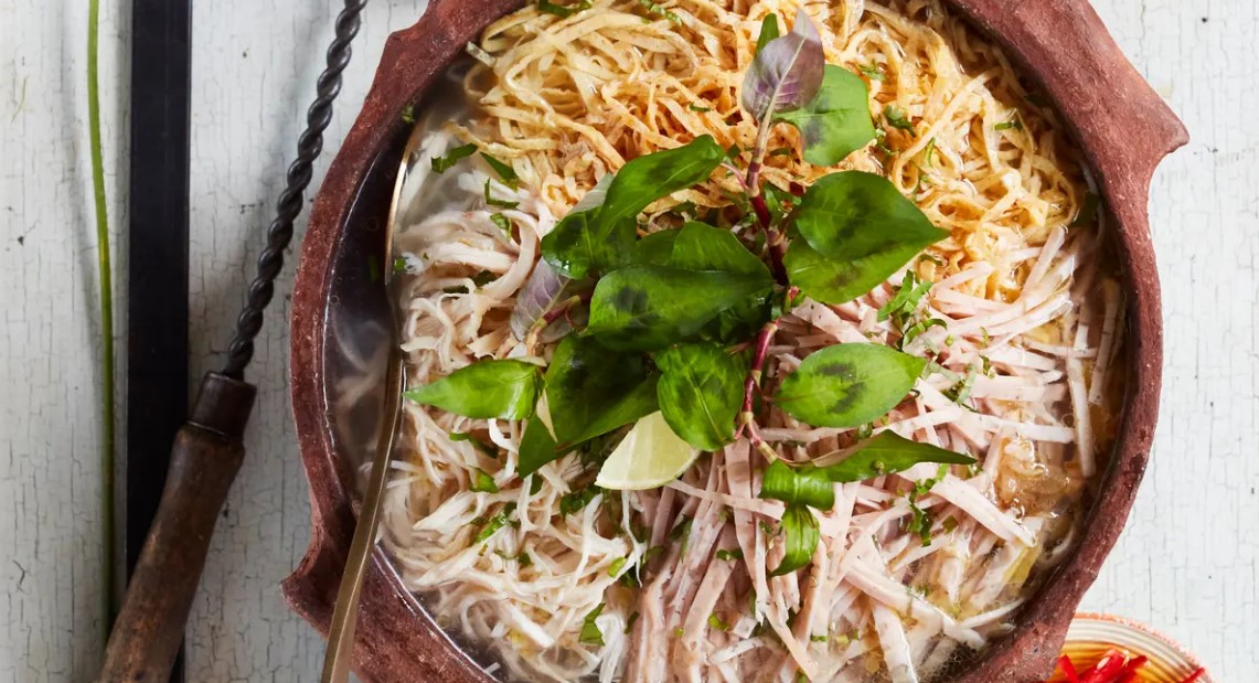 Akin to the Vietnamese soups known as pho and usually made with beef, this anise- and cinnamon-scented soup is equally good with chicken or with