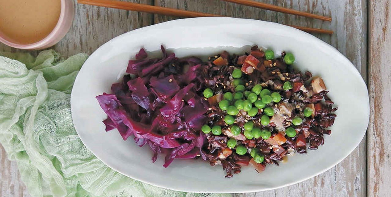 Black rice cooks into a beautiful, dark-purple hue. We’ve matched it with purple carrots, but any carrot will do. If you cannot find black rice,