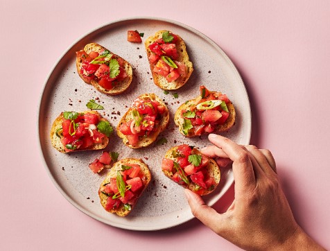 Elevating the art of bruschetta, the Tomato, Melon, and Chile Bruschetta emerges as a sensational symphony of contrasting flavors and textures. This creative rendition invites