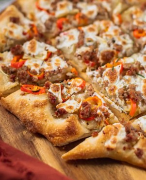 The Cracker-Thin with Fennel Sausage pizza is a delightful fusion of textures and flavors, showcasing the art of pizza-making at its finest. The thin, crispy crust serves as the canvas for the rich tomato sauce, gooey mozzarella, and homemade fennel sausage, creating a symphony of tastes that dance on your taste buds.