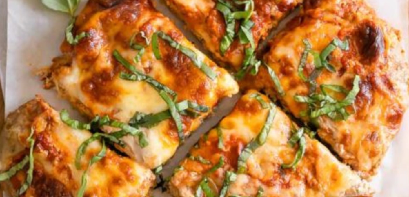 YIELD: 6 servings, each with about 5 grams of carbohydrates per serving, only a trace of fiber, and 27 grams of protein. (Based on using sugar-free pizza sauce, and only cheese, no veggies.)