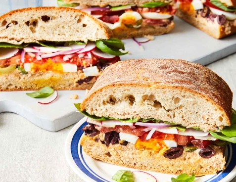 Discover the essence of the French Riviera with Niçoise Pan Bagnat—a delightful sandwich that captures the flavors of a salade niçoise, compressed between bread. Perfect for beach days or outdoor adventures, this sandwich’s true magic is revealed when prepared in advance, allowing the bread to absorb the rich dressing and meld with the vibrant fillings.