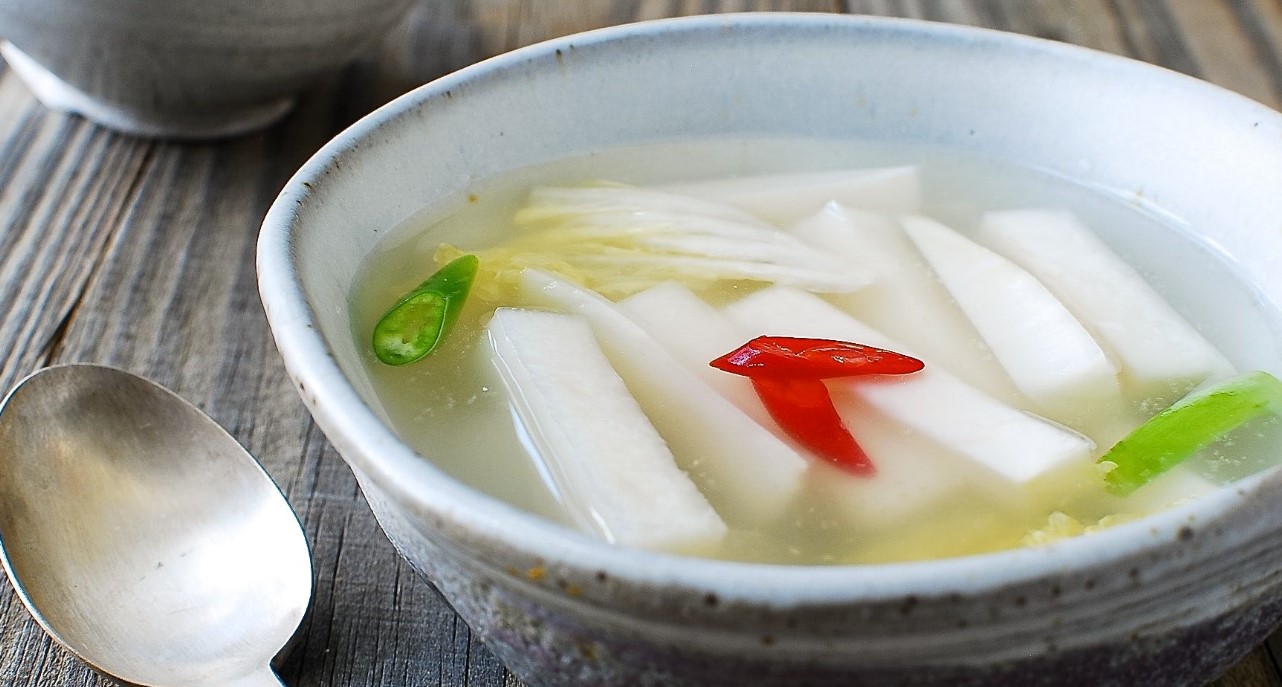 - Pour 13 cups of the water into a large pot, add the apples and onion, cover, and cook over medium heat until the apples and onion are translucent and the broth tastes sweet, about 1 hour. Refrigerated, the kimchi will last for 1 month.
