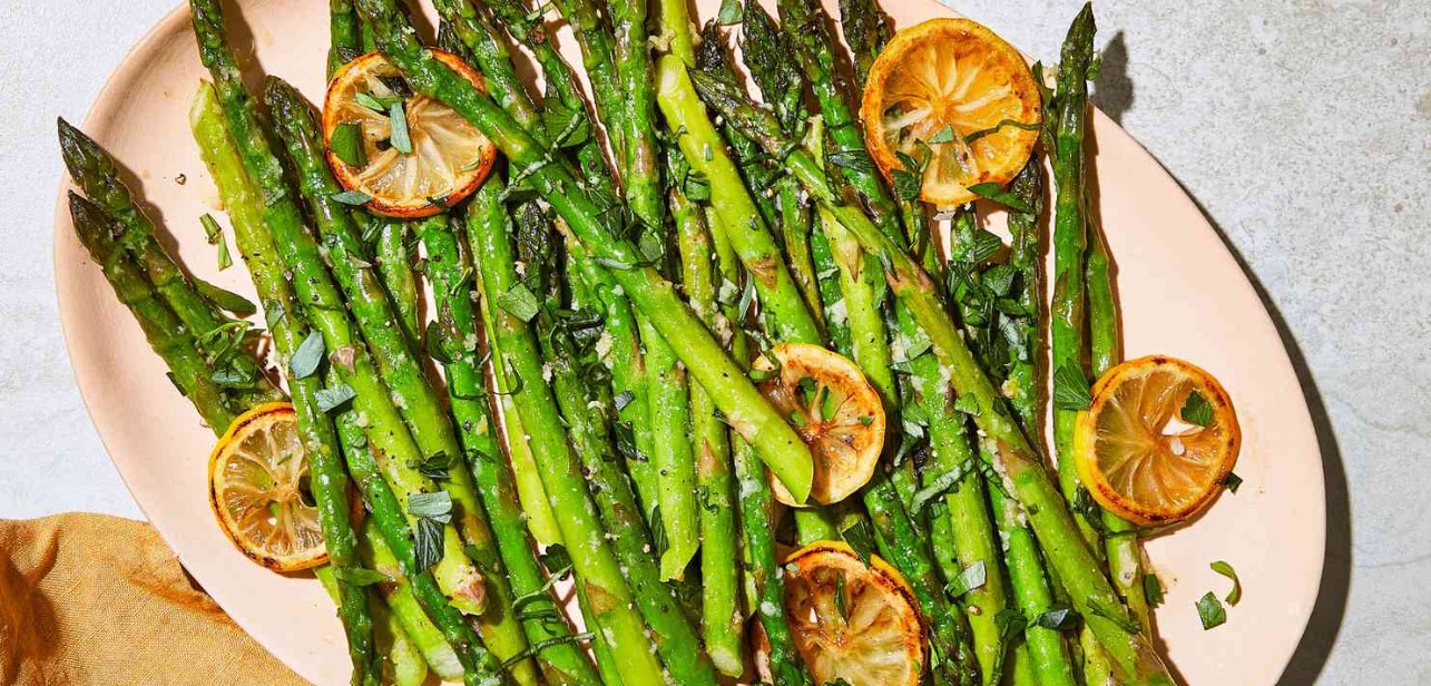 3. Remove the cooked asparagus from the oven, grill, or broiler. Serve the asparagus hot or warm, accompanied by lemon wedges for squeezing over the top.