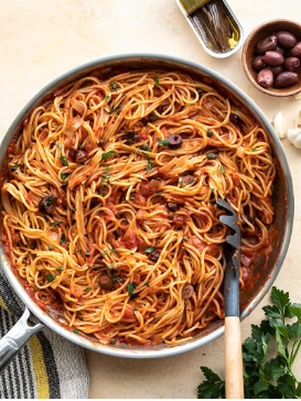 In conclusion, this one-skillet Puttanesca pasta is a testament to the flavors and convenience of classic Italian cuisine. The combination of tomatoes, garlic, anchovies, capers, and olives creates a robust and vibrant sauce that infuses every strand of pasta. By cooking the sauce and pasta together in one skillet, you save time and simplify the cooking process.