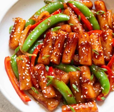 In conclusion, Spicy Stir-Fried Rice Cakes, or Tteokbokki, is a popular Korean street food that satisfies the cravings of spice lovers. This dish showcases the unique cylindrical rice cakes enveloped in a fiery and flavorful sauce, making it a favorite for casual meals and snacking alike. The recipe’s versatility allows for personalized variations, with options to include fish cakes, beef, or create a vegetarian-friendly version. The addition of napa cabbage and other vegetables enhances the dish’s texture and provides a delightful contrast to the spiciness. Whether you’re a fan of intense flavors or looking to experience authentic Korean street food, Tteokbokki is sure to impress with its bold taste and delightful aroma. Indulge in the tantalizing heat and savor the authentic flavors of this beloved Korean classic from the comfort of your own home.